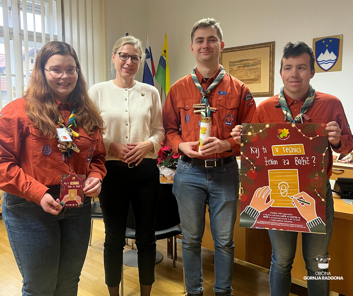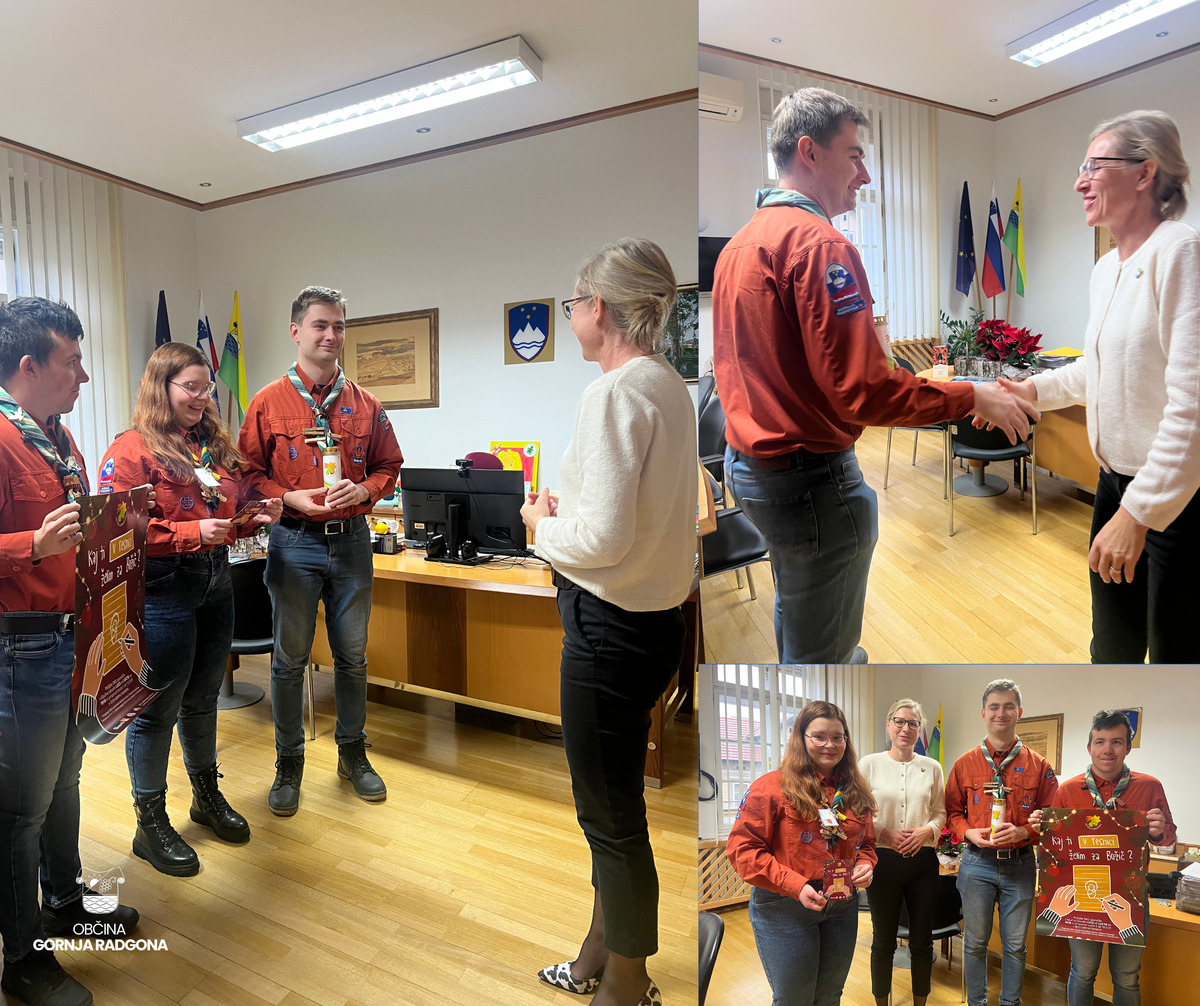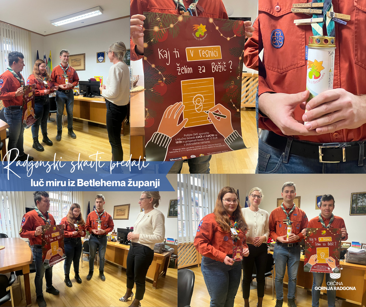 Radgonski skavti so v torek, 23. decembra 2025, na Občino Gornja Radgona prinesli Luč miru iz Betlehema. V prostorih občinske stavbe jih je sprejela županja Urška Mauko Tuš, ki se je skavtom zahvalila za njihovo poslanstvo, predanost ter ohranjanje dragocene tradicije.