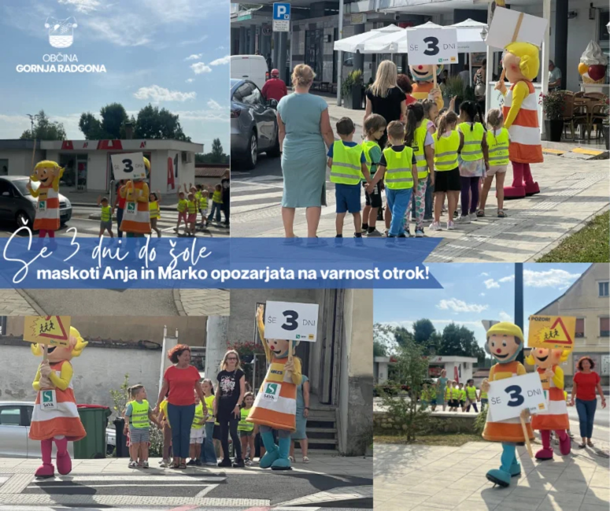 V občini Gornja Radgona sta se maskoti ustavili z napisom Še 3 dni, kjer so se jim pridružili vrteški otroci z vzgojiteljicami. Skupaj so izvedli slavnostni obhod, s katerim so pokazali, kako pravilno prečkati cesto.