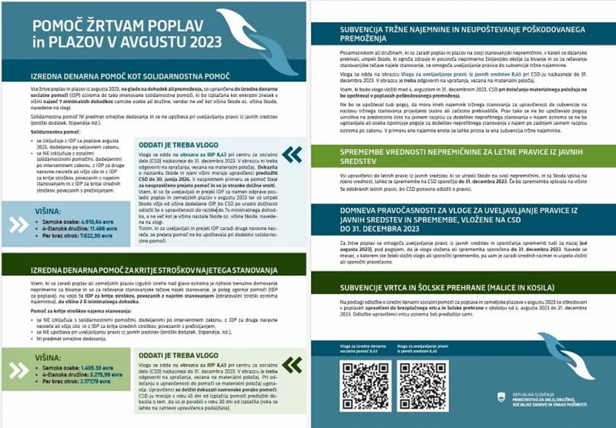 Letak z informacijami glede izredne solidarne pomoči in nekaterih drugih ukrepov - pomoč žrtvam poplav in plazov v avgustu 2023