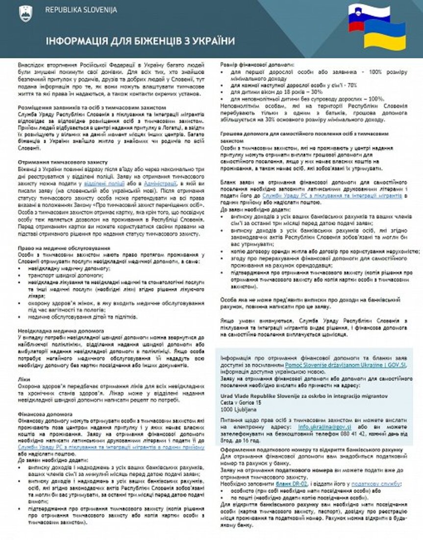 Informacije za begunce iz Ukrajine (Інформація для біженців З України)