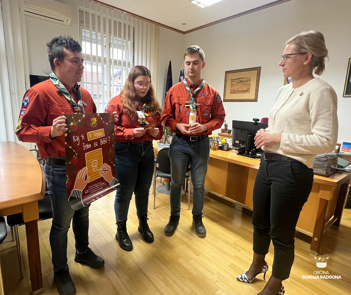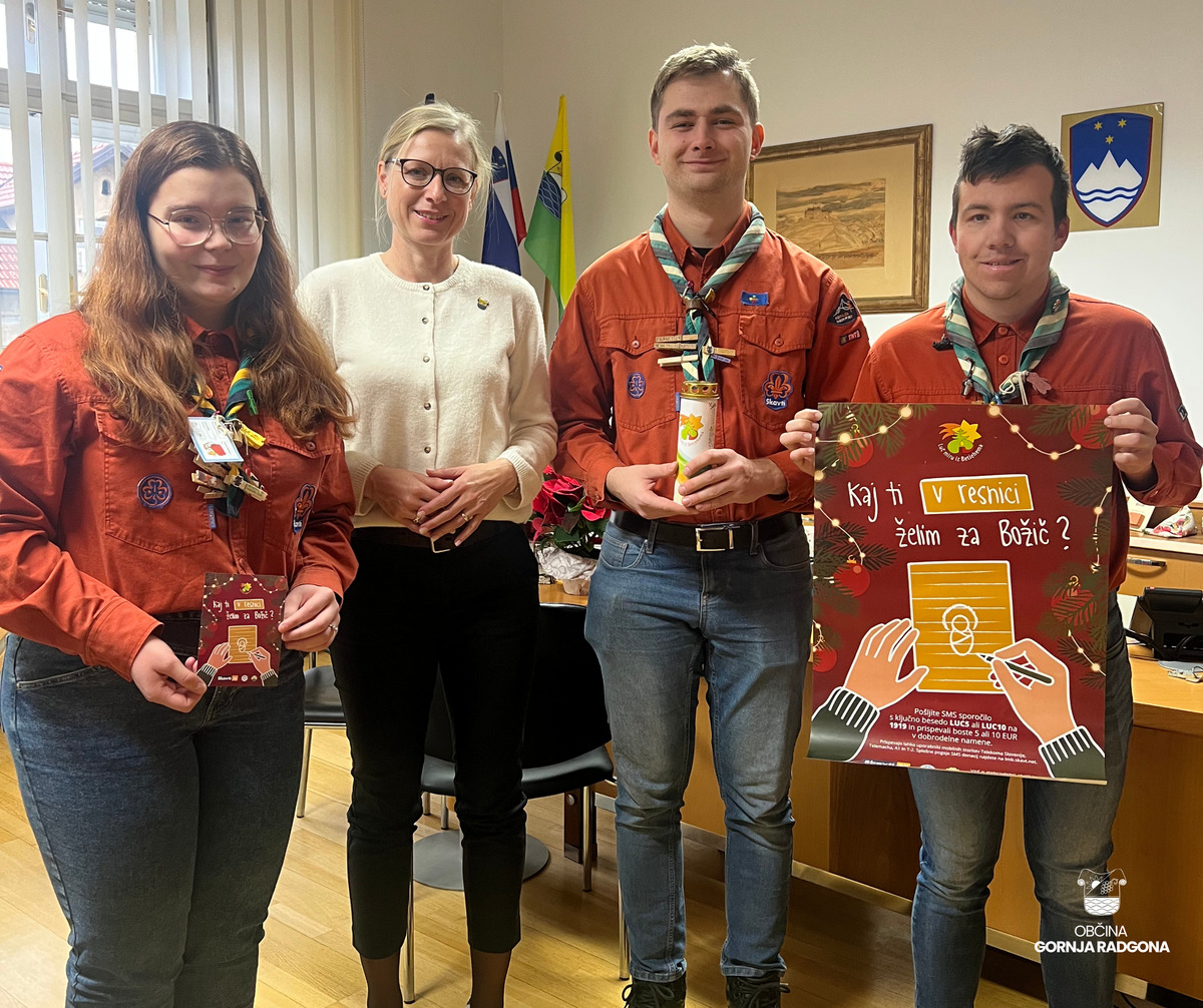 Radgonski skavti so v torek, 23. decembra 2025, na Občino Gornja Radgona prinesli Luč miru iz Betlehema. V prostorih občinske stavbe jih je sprejela županja Urška Mauko Tuš, ki se je skavtom zahvalila za njihovo poslanstvo, predanost ter ohranjanje dragocene tradicije.